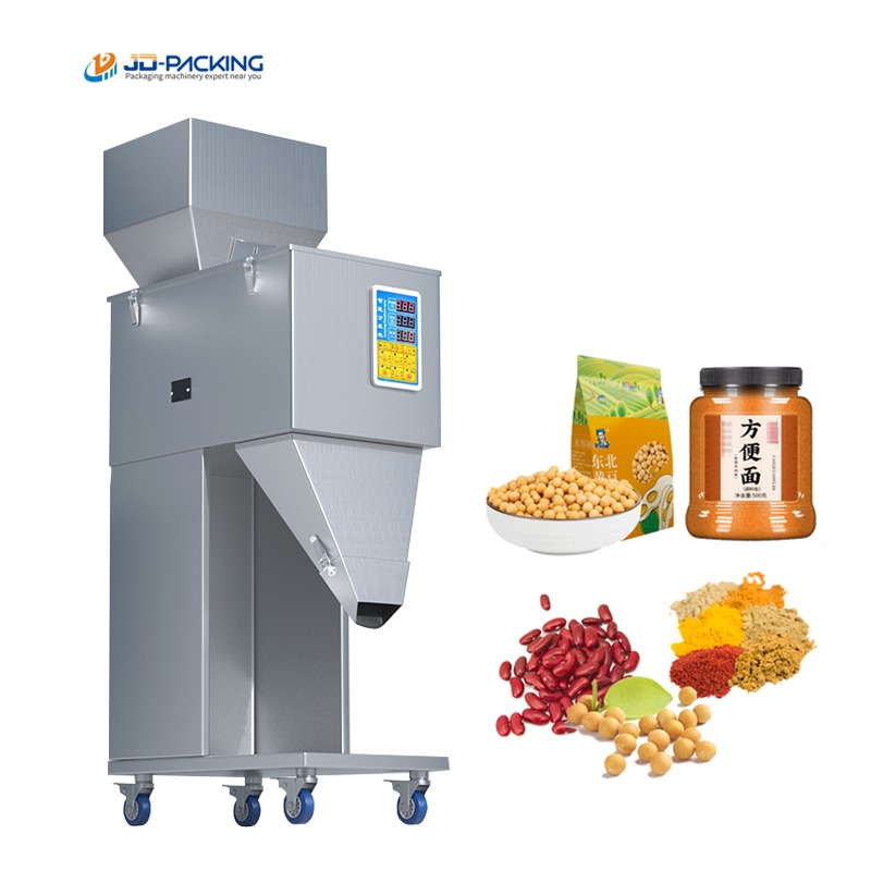 Jieding quantitative filling machines are suitable for a wide range of granular, powdered, strip-shaped, and irregular materials, including: tea (herbal/black/green), dried goods, hardware accessories, electronic components, screws/nuts, grains, fruits/vegetables, frozen dumplings/meatballs, pet food, fertilizer/feed, Chinese herbs, red dates/goji berries, fries/chips, popcorn, nuts/seeds, corn seeds, coffee beans/powder, flour, pepper/seasoning powder, etc., for precise quantitative weighing and filling