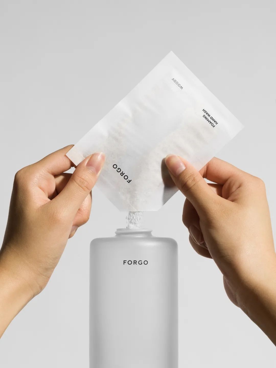 Swedish design studio Form Us With Love’s newest product design venture is Forgo, a sustainable line of personal care items. For now, they are focused on perfecting a single omnipresent and timely product: hand soap. Launching in February, Forgo’s version comes in a small paper sachet containing 12 grams of soapy powder, which is to be mixed with 250ml of tap water to create a liquid hand wash. This DIY approach facilitates the use of paper packaging over plastic, with the step of adding water easily introduced once the product has reached its final destination (your bathroom).