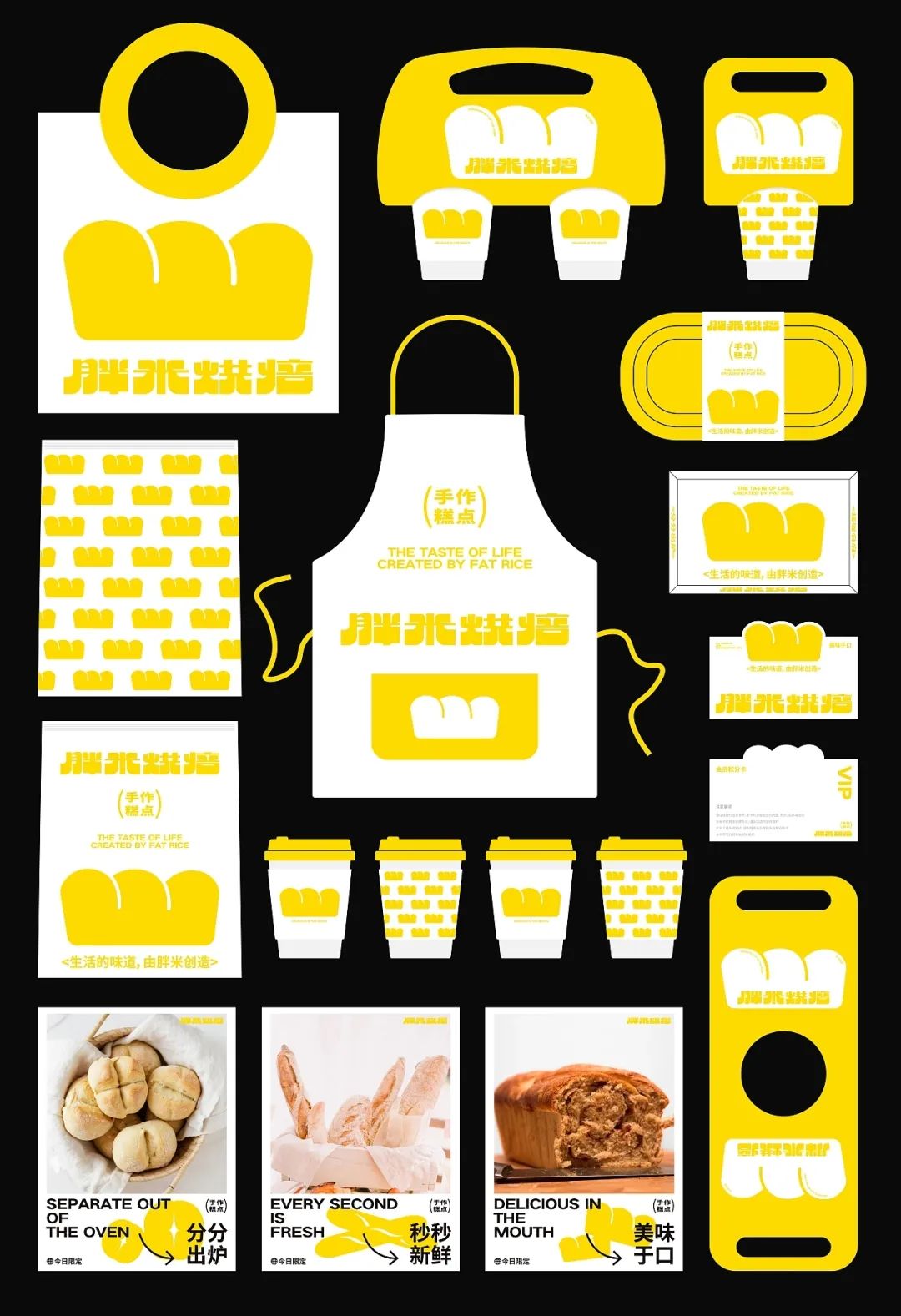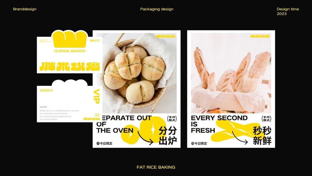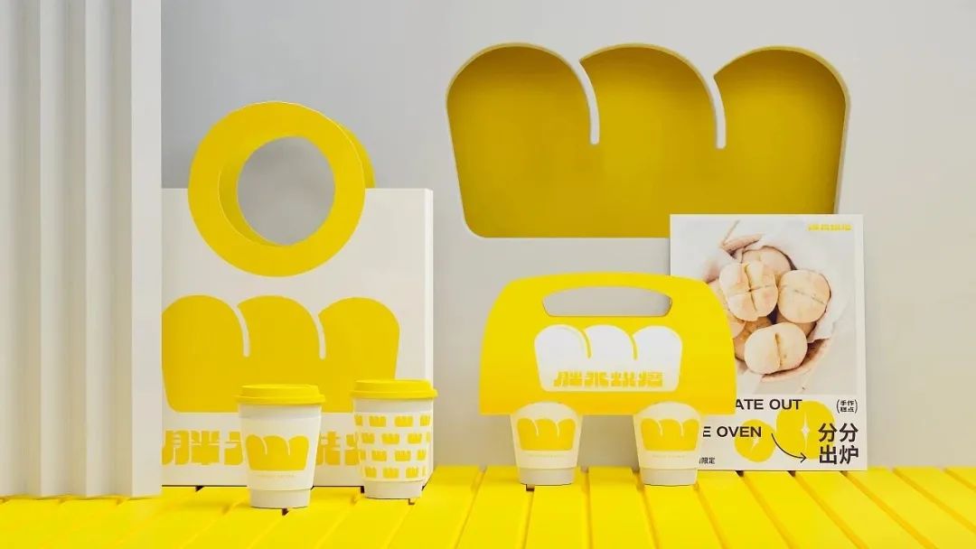 企业品牌是烘焙食品企业的核心竞争力之一,在消费者心目当中拥有良好的品牌形象,能够帮助企业迅速地拓展市场,提升利润水平。因此设计上,选用面包作为核心视觉元素,直观传递产品卖点属性,通过多次出现的面包给人以深刻的记忆,形成品牌超级符号,打造最具辨识度的品牌记忆点。