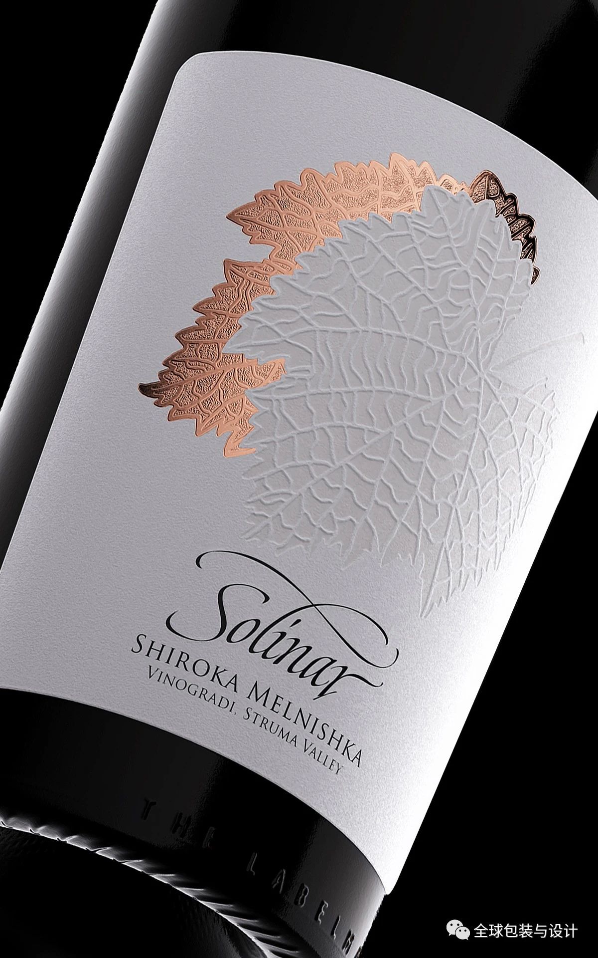 设计的灵感来自意大利阿尔卑斯山引人注目的风景,其特点是在明亮的白雪覆盖的山峰的背景下,黑暗的山脉轮廓。使用黑色和金色的配色方案强调了酒的高品质,这也传达了一种独特和奢华的氛围。